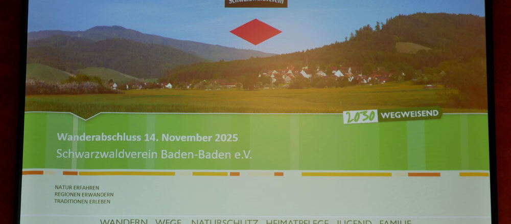 Wanderabschluss der Ortsgruppe Baden-Baden Am Freitag, 14. November versammelten sich gut 60 Mitglieder unserer Ortsgruppe im Gasthof Sternen in Staufenberg ein. Ein Teil der Gruppe ist mit Gertraud nach Staufenberg gewandert, der Rest kam mit Bus oder PKW. Nach dem ersten „Hallo“ fand jeder seinen Platz im Festsaal des Sternen und nach der Getränkerunde präsentierte unsere Wanderwartin Marion Rotthäuser Neuigkeiten und Rückblicke aus dem Bereich Wandern. Sie beginnt mit dem Thema Sicherheit und weist noch einmal darauf hin, dass alle Mitglieder des Schwarzwaldvereins unfallversichert sind. Um für eventuelle Notfälle vorbereitet zu sein, hat Christa Frauenkron Notfalldosen besorgt, die sich Interessierte […]
