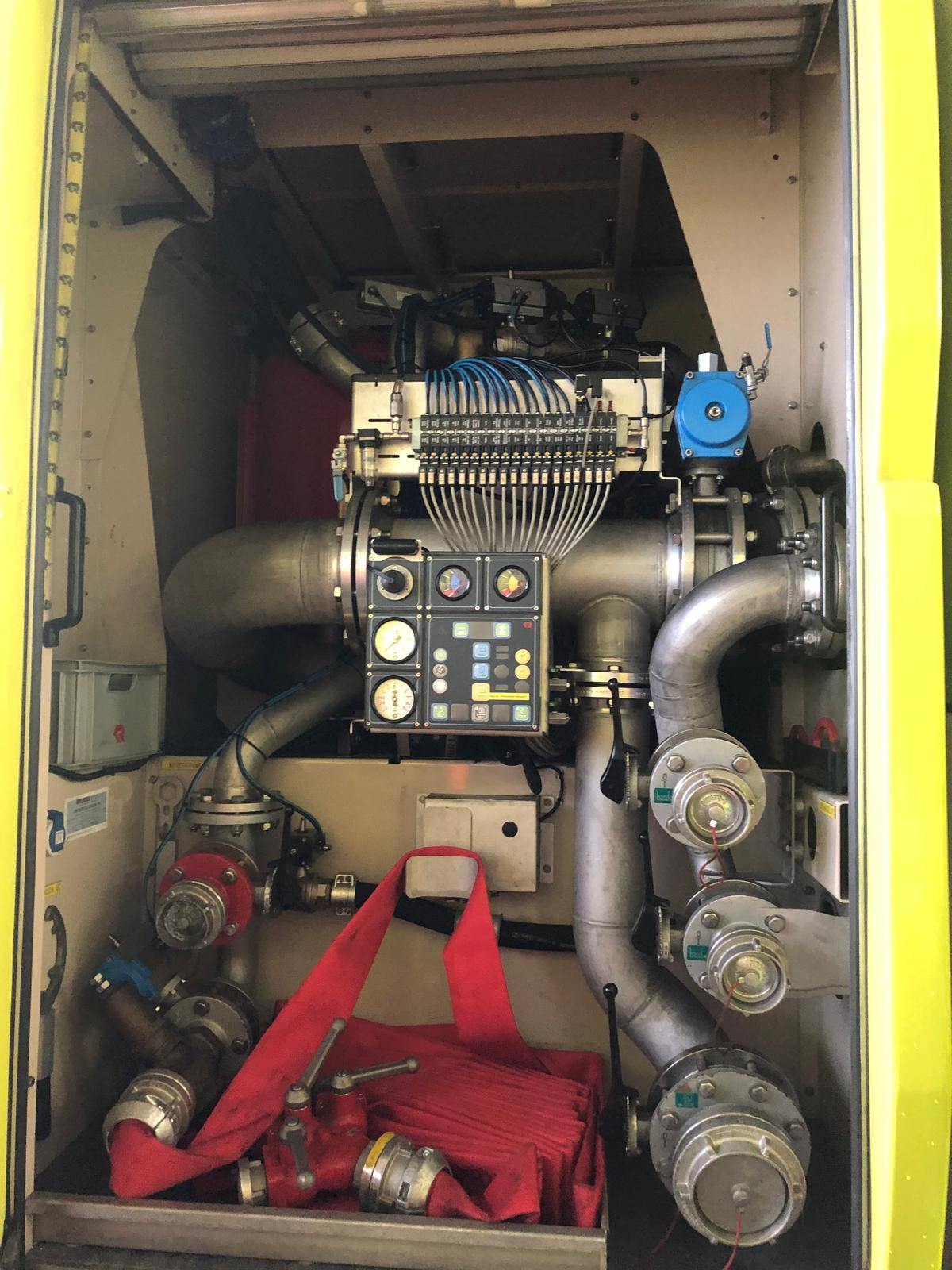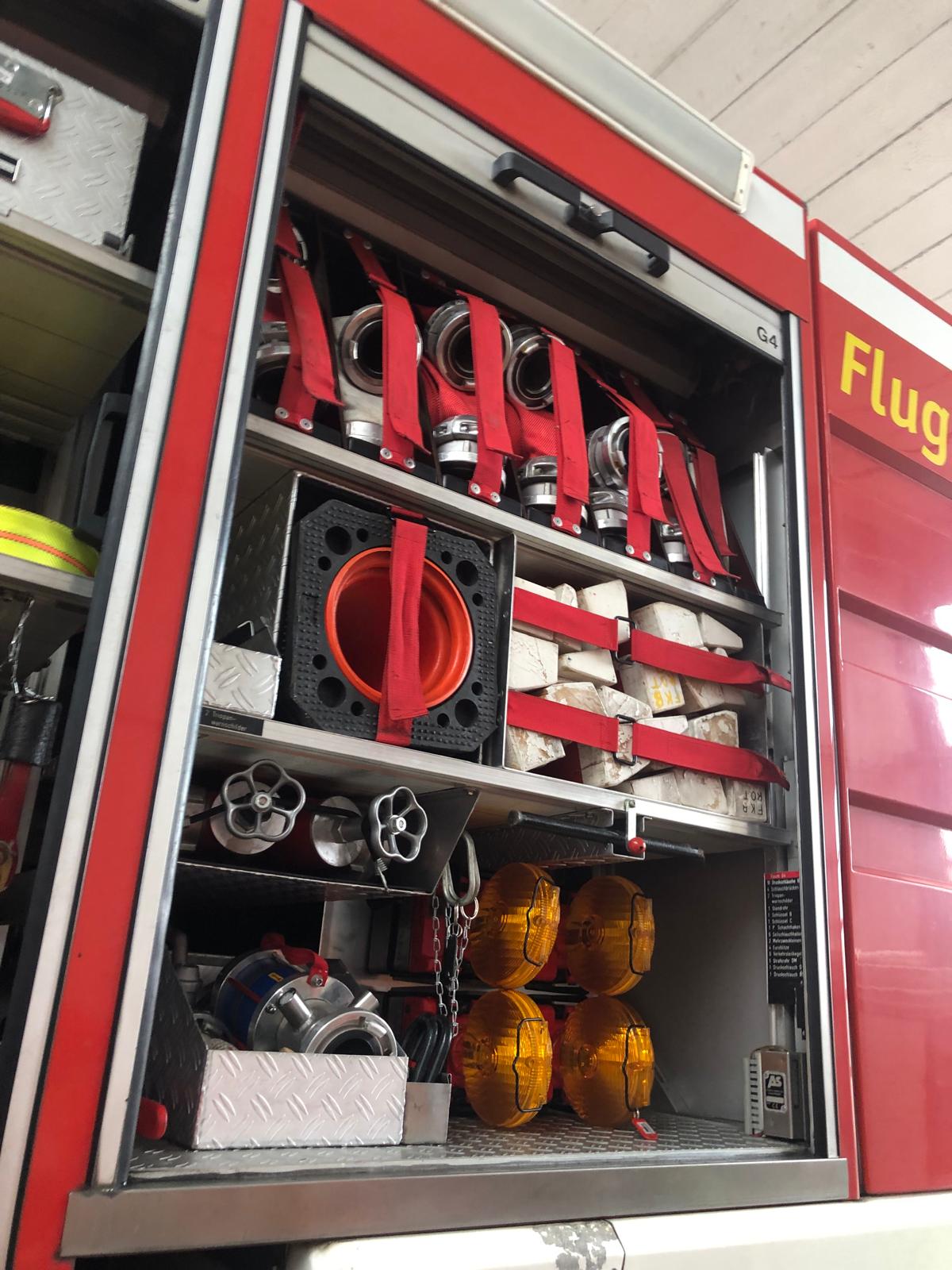 Er verfügt über ein großes Wissen von Technik und Einsatz der Fahrzeuge und letztere wurden auch durch die Betriebsfeuerwehr auf dem Gelände demonstriert – mit großem Erstaunen unsererseits! Das leistungsstärkste Fahrzeug ist der Rosenberger Panther, er ist mit 750 PS ausgestattet und verfügt über einen 12.000 Liter Wassertank. Die Höchstgeschwindigkeit beträgt 120 km/h!