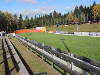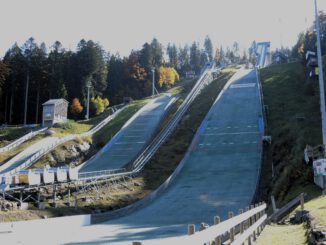 Nach dem sehr guten Mittagessen im nahe gelegenen Hotel Imbery spazierten wir zur Adler-Skischanze – seit 2005 sind es 4 Schanzen in verschiedenen Schwierigkeits-Stufen und sie sind ganzjährig sprungbereit.