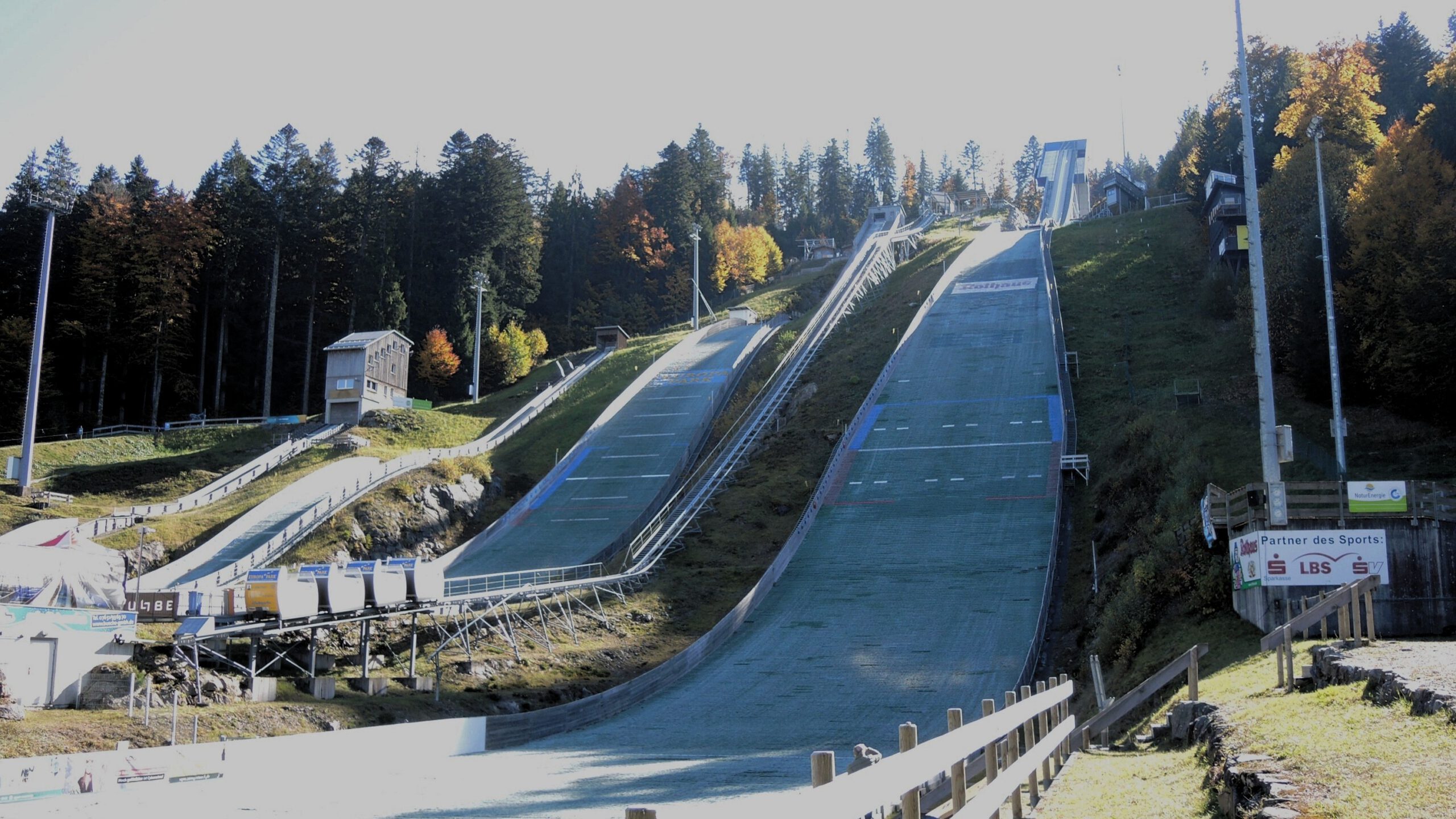 Nach dem sehr guten Mittagessen im nahe gelegenen Hotel Imbery spazierten wir zur Adler-Skischanze – seit 2005 sind es 4 Schanzen in verschiedenen Schwierigkeits-Stufen und sie sind ganzjährig sprungbereit.