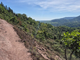Die Wanderung führte vom Bahnhof Albersweiler über mehrerer Pfälzer Hütten zur Landauer Hütte und über den sogenannten Toskana-Trail zurück zum Bahnhof Albersweiler. In Albersweiler fand man zur Überbrückung der Wartezeit auf den Zug eine Einkehrmöglichkeit.