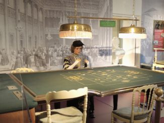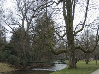 Begleitet wurden wir von zahlreichen, teilweise etwas mystischen Ansichten gegen den Himmel. Dessen Lichtspiele mit den Bäumen, deren Äste und Zweige präsentierten uns die filigrane Schönheit der momentanen winterlichen Natur. Bei der Alcyon – Skulptur von Murielle Zeidler im Park der Residenz Bellevue und dem altehrwürdigen Baum gegenüber machten wir kehrt, um rechtzeitig an der Museums-Führung teilzunehmen. Verstärkt um ein weiteres Mitglied folgten wir gespannt den interessanten Ausführungen der Archivarin Frau Dagmar Rumpf, zu der Geschichte Baden-Badens von der Römerzeit bis heute.
