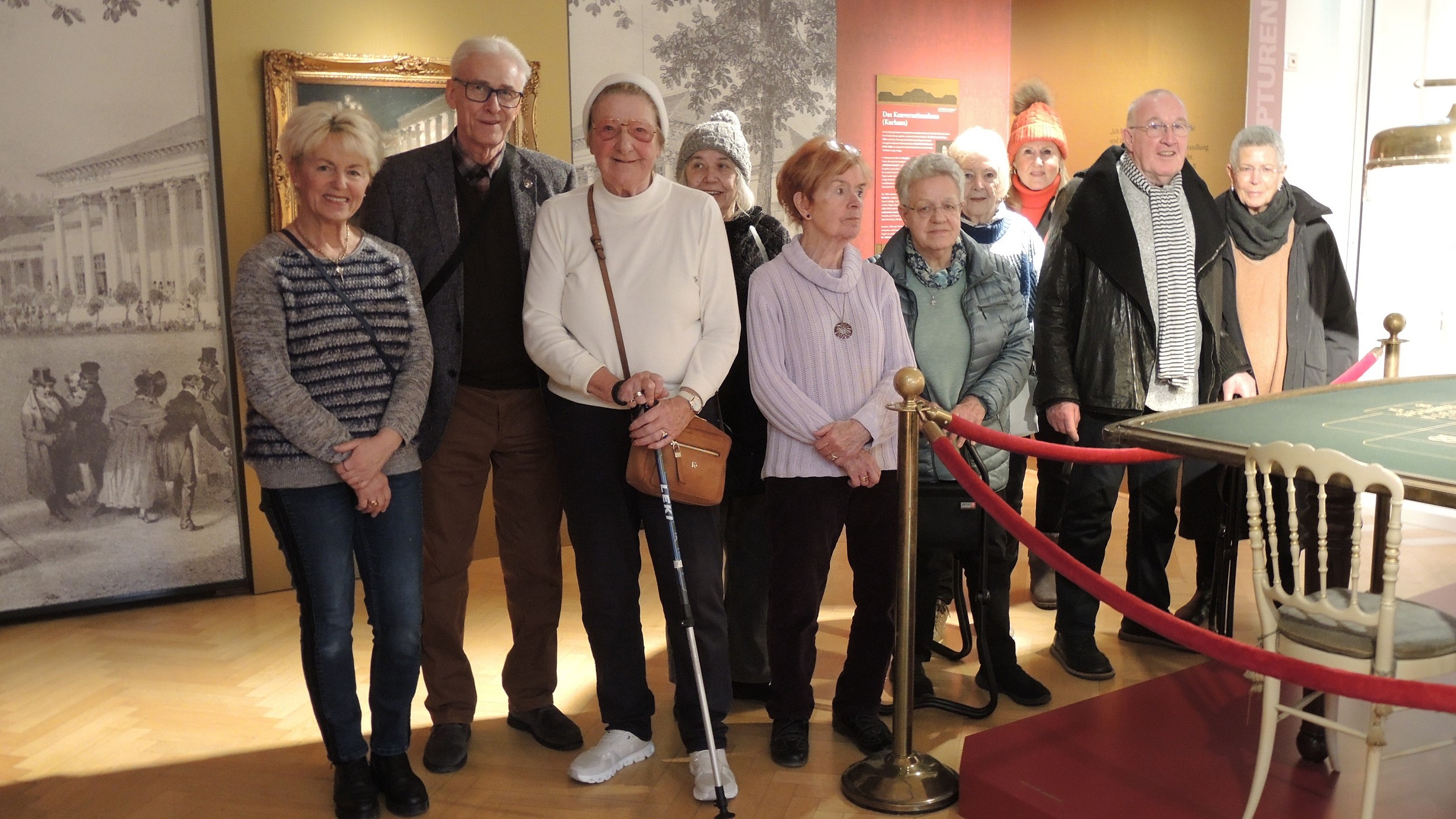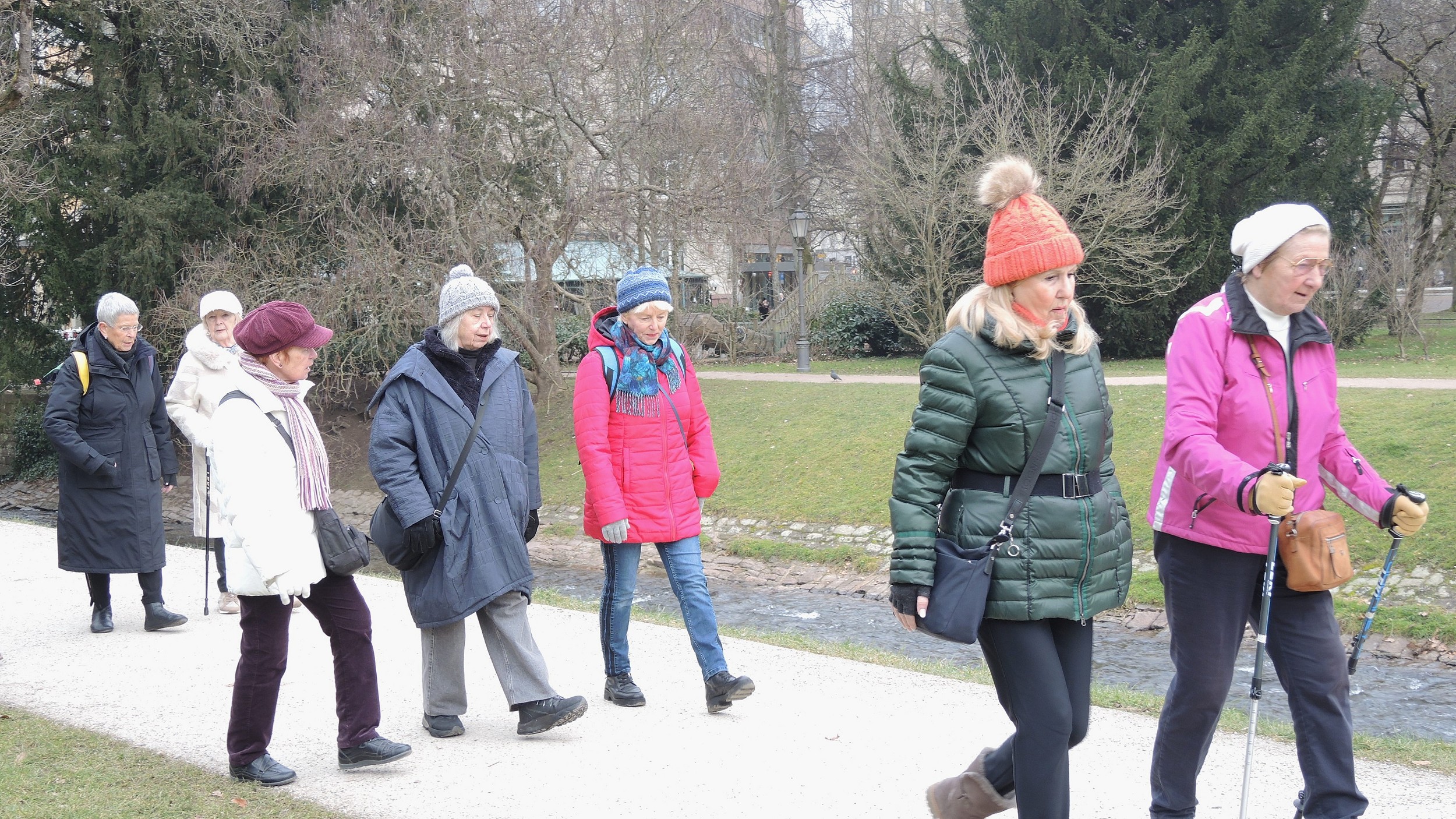 Neun gutgelaunte Senioren trafen sich vor der Caracalla Therme, um bei angenehmem Winterwetter durch die City und Lichtentaler Alle zum Stadtmuseum zu wandern. Nach ein paar Informationen durch unsere Wanderführerin Barbara Wranik zur geplanten Führung im Museum ging es die Gernsbacher Straße hinab zum Leopoldsplatz und Goetheplatz. Vor dem Theater bogen wir in die Lichtentaler Allee ein und wanderten flotten Schrittes Richtung Lichtental.