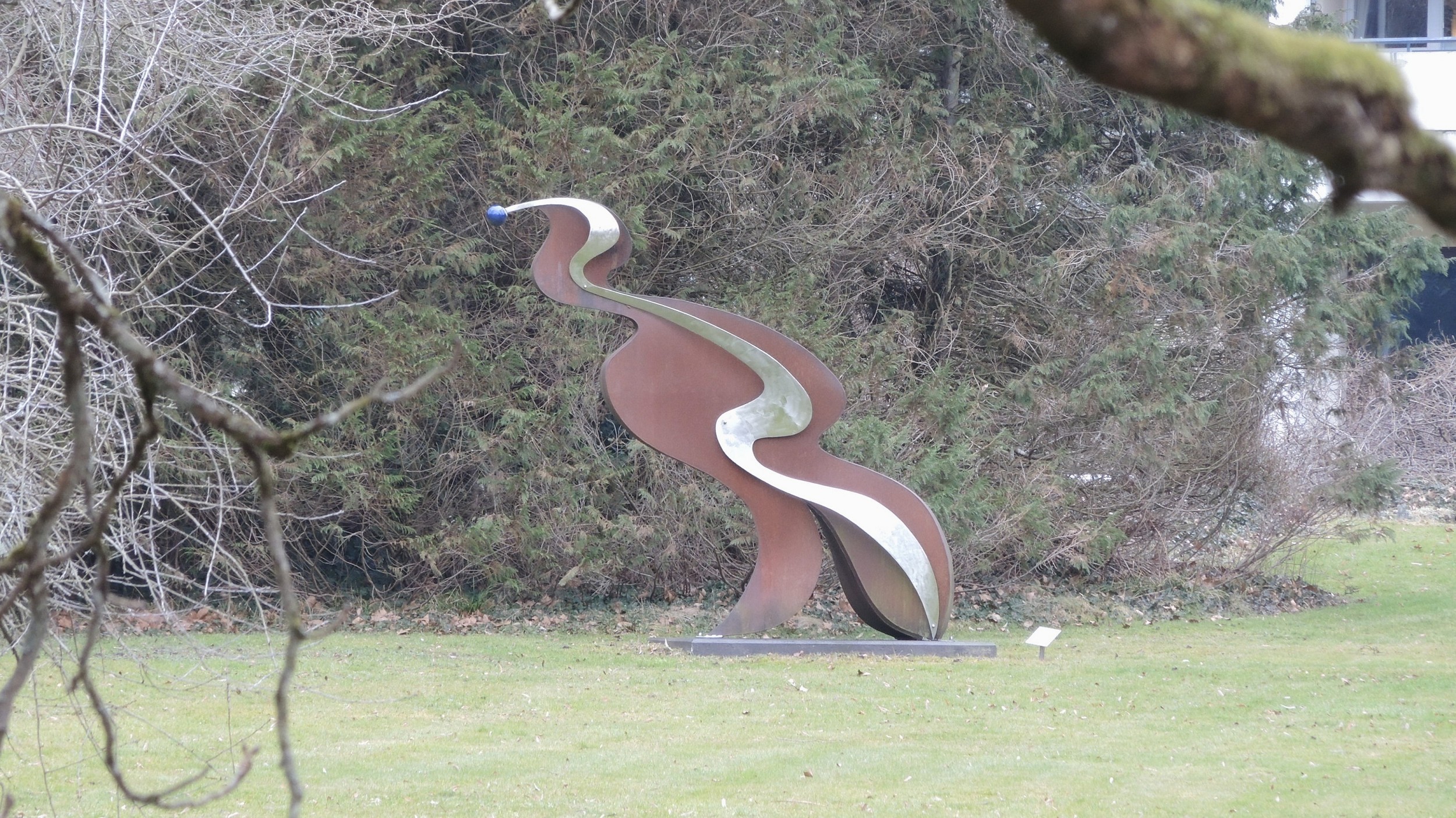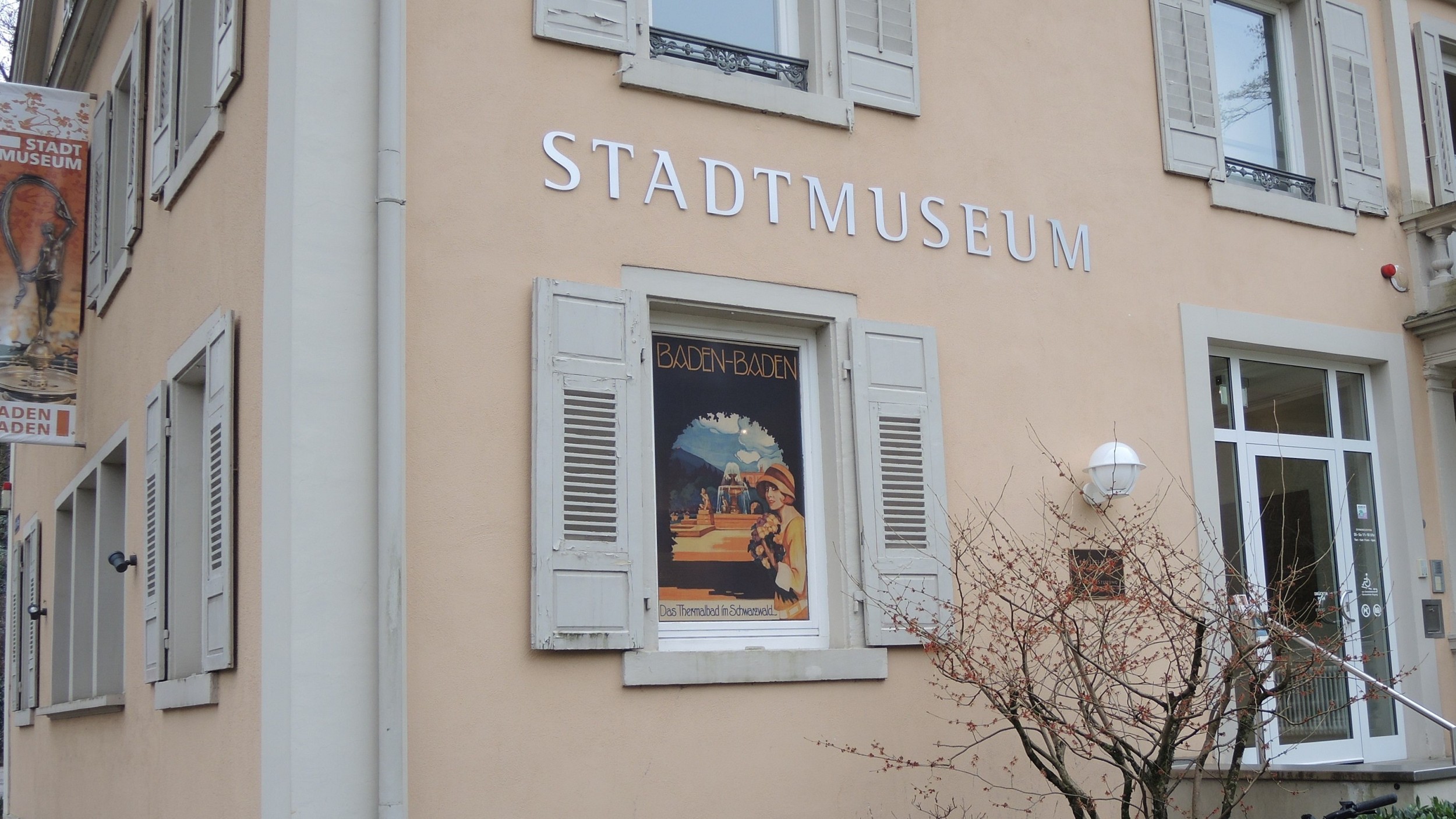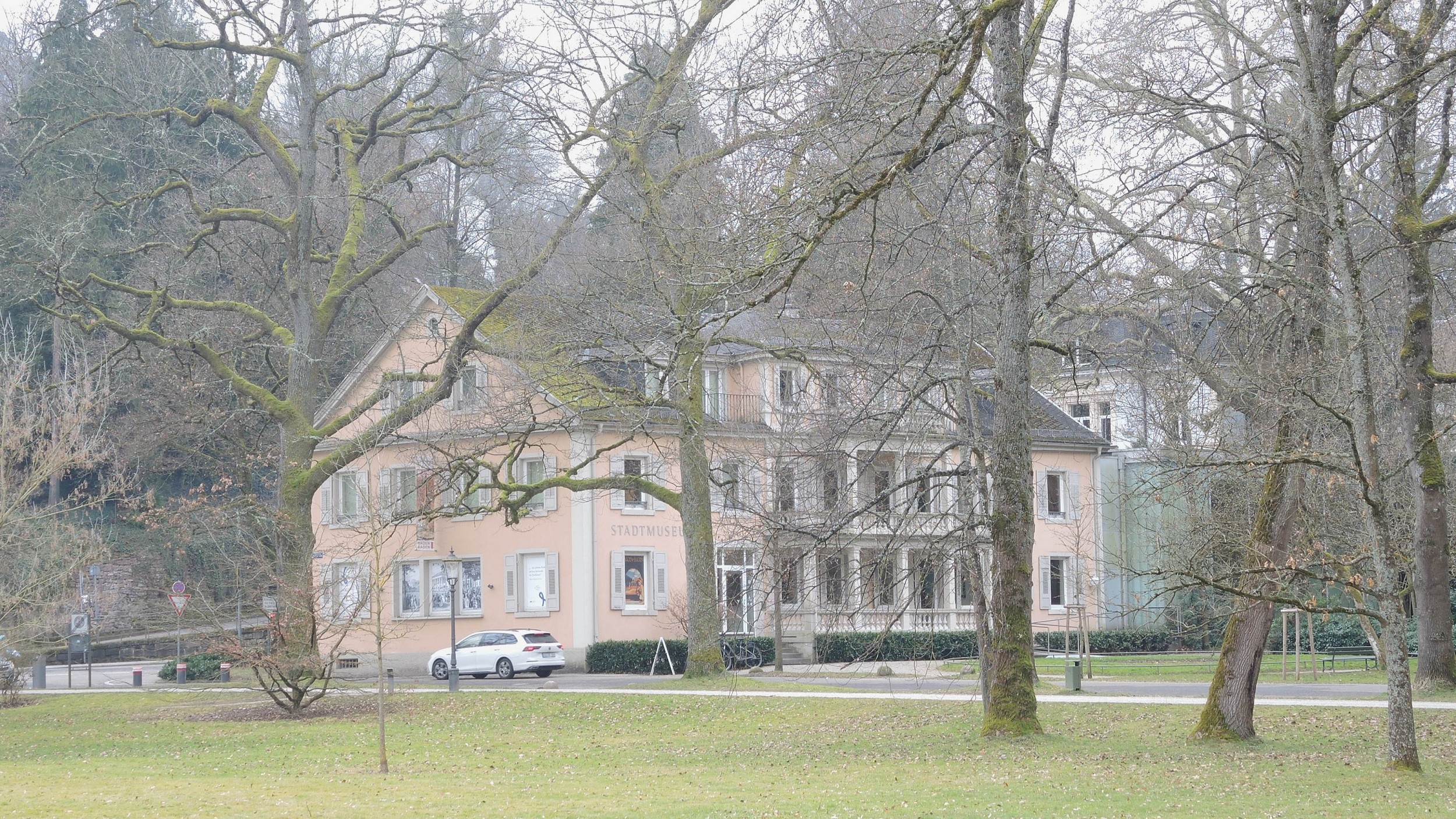 Begleitet wurden wir von zahlreichen, teilweise etwas mystischen Ansichten gegen den Himmel. Dessen Lichtspiele mit den Bäumen, deren Äste und Zweige präsentierten uns die filigrane Schönheit der momentanen winterlichen Natur. Bei der Alcyon – Skulptur von Murielle Zeidler im Park der Residenz Bellevue und dem altehrwürdigen Baum gegenüber machten wir kehrt, um rechtzeitig an der Museums-Führung teilzunehmen. Verstärkt um ein weiteres Mitglied folgten wir gespannt den interessanten Ausführungen der Archivarin Frau Dagmar Rumpf, zu der Geschichte Baden-Badens von der Römerzeit bis heute.